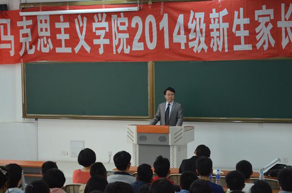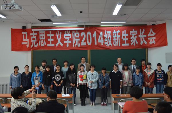10月9日,马克思主义学院2014级新生家长会在文科一号楼A447召开。学院领导和各专业相关教师同百余位新生、家长一起参加了此次家长会。会上,田鹏颖介绍了新生适应性问题,张满胜就学生管理工作作了相关阐述。学院教师为学生佩戴了校徽。