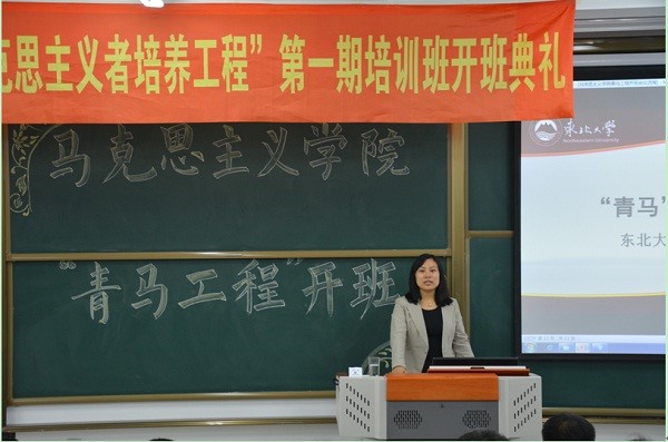 11月7日18:30,东北大学马克思主义学院“青年马克思主义者培养工程”第一期培训班开班典礼在文科2号楼A402举行。东北大学团委副书记吕静,马克思主义学院党委书记张满胜莅临典礼。