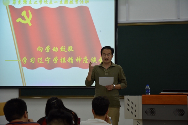 4月29日晚,马克思主义学院于文馆学馆A114室举办“辽宁劳模精神”主题讲座,该讲座由马克思主义学院任鹏主讲,马克思主义学院2013级全体学生党员、预备党员、积极分子参与活动。