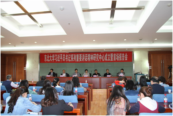 5月6日,东北大学习近平总书记系列重要讲话精神研究中心(以下简称中心)成立大会暨首场报告会在汉卿会堂402室举行。校党委副书记熊晓梅,中心主任、我校马克思主义学院教授陈凡,马克思主义学院院长田鹏颖,院党委书记张满胜,辽宁省委宣传部理论处处长肖明江,辽宁省委高校工委思想政治教育处处长李洪军,中心副主任、教育部高校德育研究中心主任艾四林等中心专家委员会成员出席成立大会,马克思主义学院师生100余人参加大会。会议由田鹏颖主持。