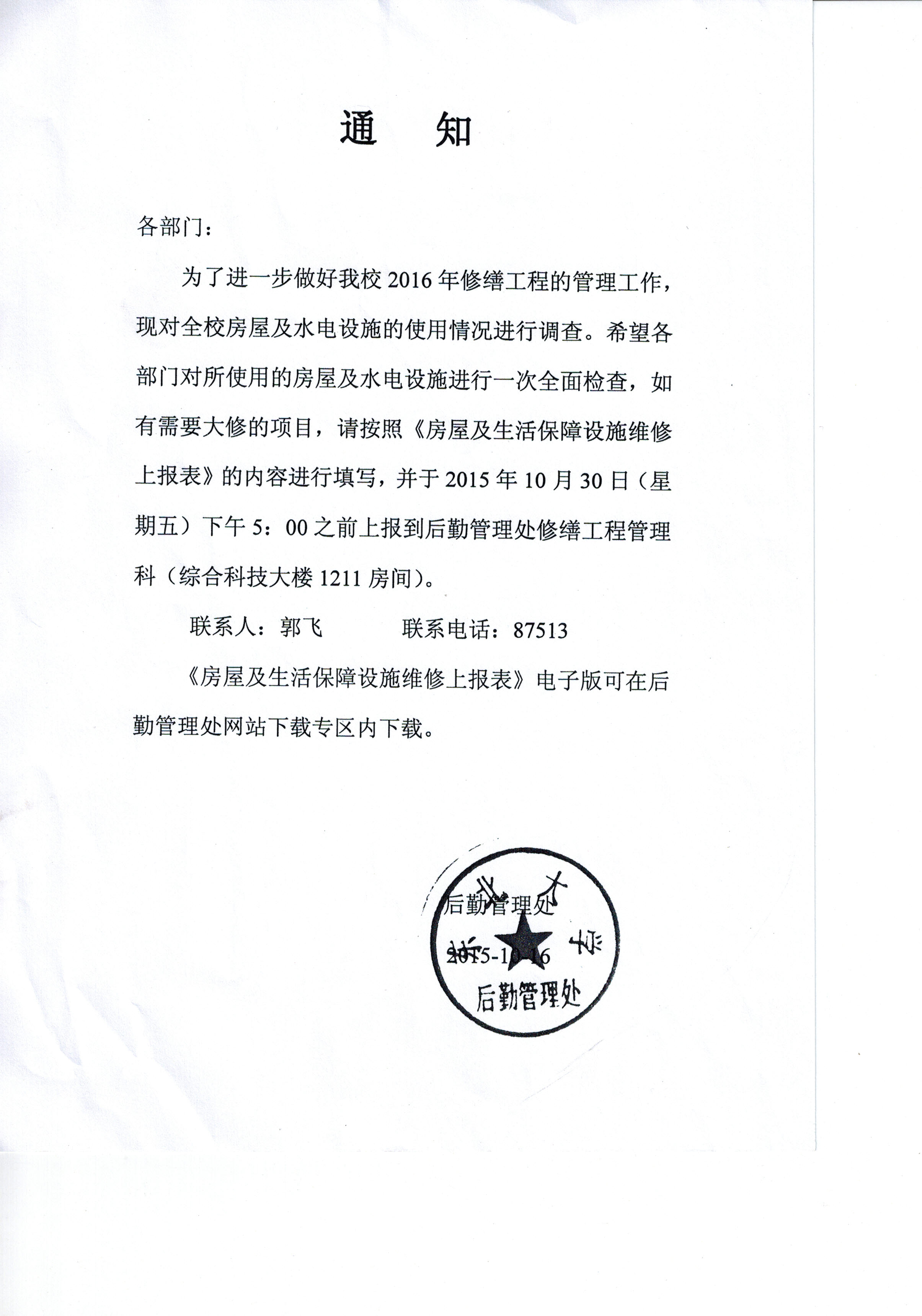 关于做好我校2016年修缮工程管理工作的通知