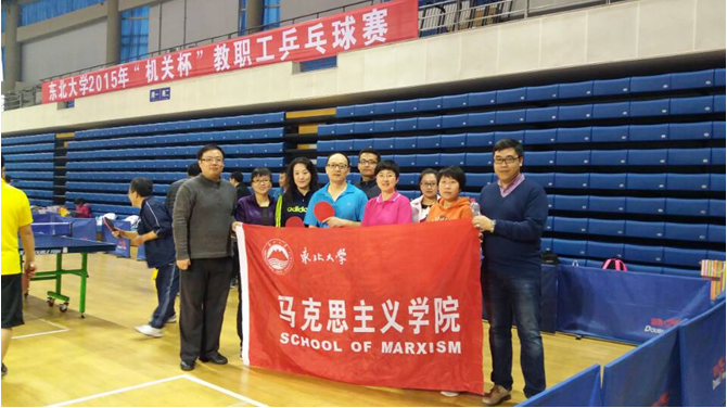 11月7日上午八点,东北大学2015年“机关杯”教职工乒乓球赛在刘长春体育馆开赛。马克思主义学院在李晓璐副书记带领下,由段炼、于春玲、张秋成、于洪波、赵亮、高青等老师组成代表队,出征团体和单项比赛。在三个半小时的团体赛中,代表队先后和冶金学院、生命科学与健康学院、继续教育学院代表队分别进行男单、女单、男双、女双和混双比赛。比赛中,尽管强敌如林,但大家积极应战、彼此鼓励,充分展现了马院人的精神风貌。