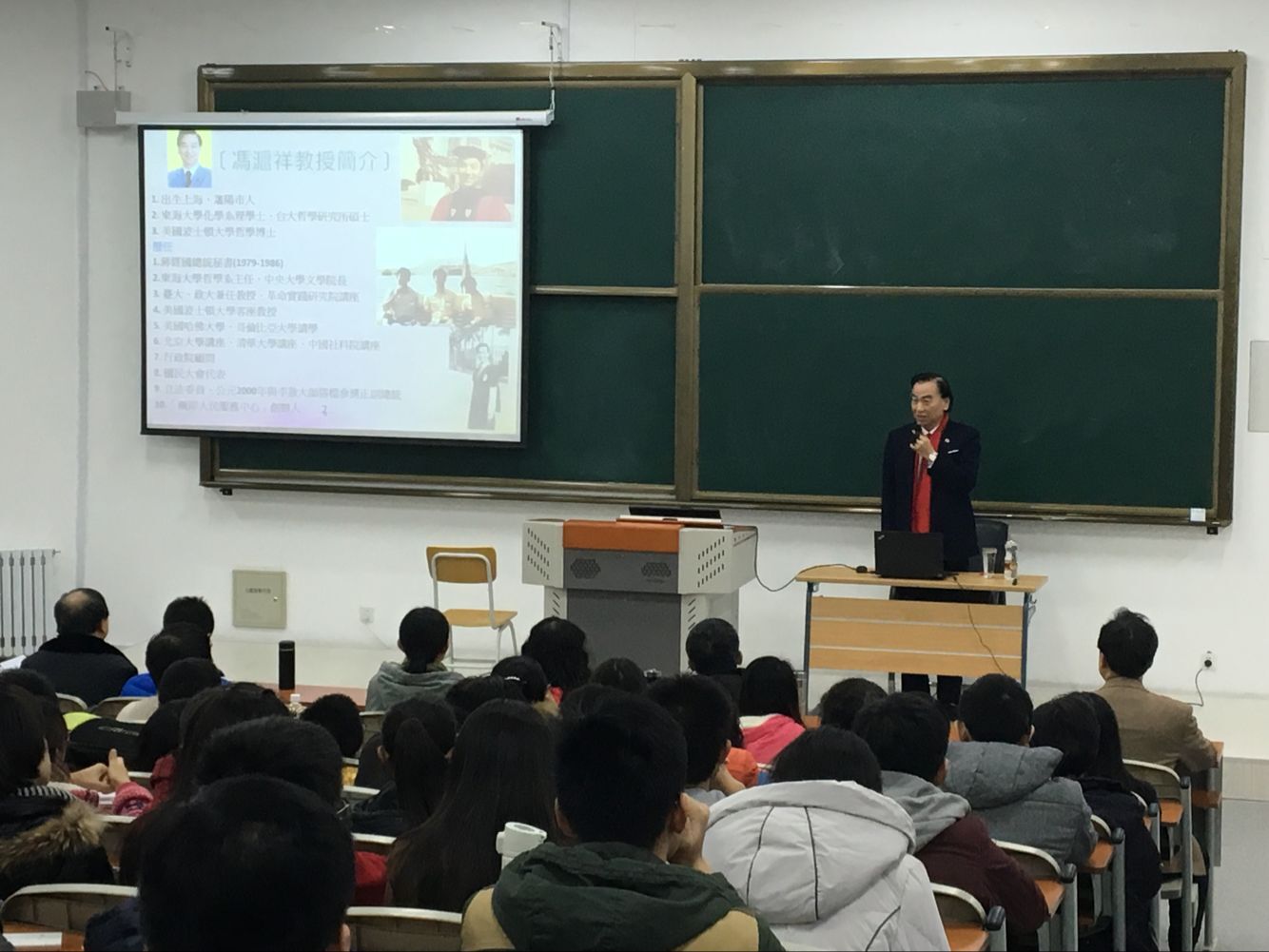12月17日下午,东北大学兼职教授、台湾国立中央大学哲学研究所冯沪祥教授受邀为马克思主义学院师生作了题为《从“习马会”看两岸和平发展大势》的专题报告。报告会由马克思主义学院院长田鹏颖教授主持。