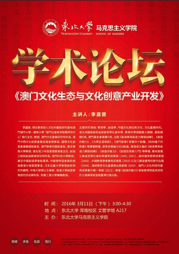 学术论坛:澳门文化生态与文化创意产业开发