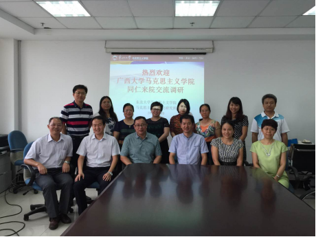 7月20日,广西大学马克思主义学院一行8人,在副院长文东升教授带领下到我院考察交流。张满胜书记、马克思主义中国化研究所教师参加了交流座谈。座谈会由张满胜书记主持。