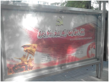 近年来,东北大学致力于高校思政课教学改革,相继推出经典文献品读和个性化教学试验等,都取得显著成效。近日,为庆祝中国共产党成立95周年和红军长征胜利80周年,切实把习近平总书记重要讲话精神贯彻在日常教学,学校党委宣传部和马克思主义学院依托“中国近现代史纲要”课教学,隆重推出学生艺术作品主题展。教师们面向艺术学院、文法学院和江河建筑学院的大一学生,鼓励他们用最擅长的艺术方式向党和祖国献上衷心祝福,将爱国、爱党、爱社会主义紧密联系起来,抒发对中国特色社会主义的道路自信、理论自信、制度自信和文化自信。征集到作品后,教师们精选40多幅,以《献给祖国的祝福》为主题,在学校南湖校区小西门集中展出。这些书法、绘画、剪纸无不渗透着学生的感情与心血,成为培养爱国之情、砥砺强国之志的展示,充分体现学校多学科发展的态势,也展现了高校思政课教学改革的新方向。