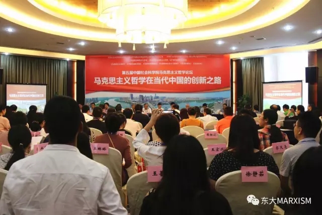 为深入学习领会习近平总书记7.26重要讲话精神,贯彻落实习近平总书记在哲学社会科学工作座谈会上的重要讲话精神,迎接党的十九大胜利召开,进一步推进马克思主义中国化、时代化,8月26日至27日,由中国社会科学院马克思主义理论学科建设和理论研究工程领导小组、中国社会科学院国家文化安全与意识形态建设研究中心、中国历史唯物主义学会、东北大学共同主办,东北大学马克思主义学院和辽宁省马克思主义学会承办,《马克思主义研究》、《中国社会科学报》、《毛泽东思想研究》、《中国特色社会主义研究》 、《毛泽东研究》、《党政研究》等单位协办的第五届中国社会科学院马克思主义哲学论坛在东北大学成功举办。来自教育部社科中心、中国社会科学院、清华大学、人民大学、南开大学、上海交通大学、复旦大学、南京大学、东北大学等90所高校、科研院所的150余位专家学者共聚一堂,以 “马克思主义哲学在当代中国的创新之路”为主题,聚焦当代中国马克思主义哲学观的研讨。中国社会科学院国家文化安全与意识形态建设研究中心主任侯惠勤,教育部高等学校社会科学发展研究中心原主任田心铭,中国社会科学院马克思主义研究院副院长金民卿,中国社科院国家文化安全与意识形态建设研究中心副主任兼秘书长朱继东,教育部高等学校社会科学发展研究中心理论处处长郝清杰,辽宁省社科联副主席金虎,中共辽宁省委宣传部理论处肖明江处长,中共辽宁省委高校工委宣传部部长、思政处王哲处长,东北大学马克思主义学院张满胜书记等出席了论坛。论坛由东北大学马克思主义学院院长田鹏颖教授主持。