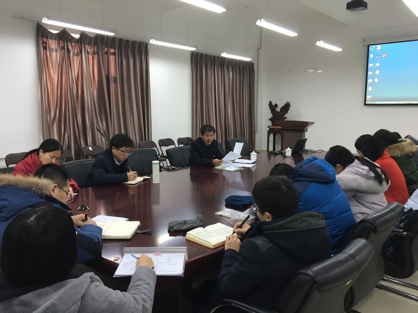 12月6日,马克思主义学院党委开展基层党支部规范化建设专题学习与研讨,学校组织部副部长姜玉原应邀作了题为“深入学习贯彻党的十九大精神,强化三型两功能建设,厚植基础特色品牌”的辅导报告。马克思主义学院教工、学生党支部书记及支委参加了此次学习研讨活动。活动由马克思主义学院党委书记张满胜主持。