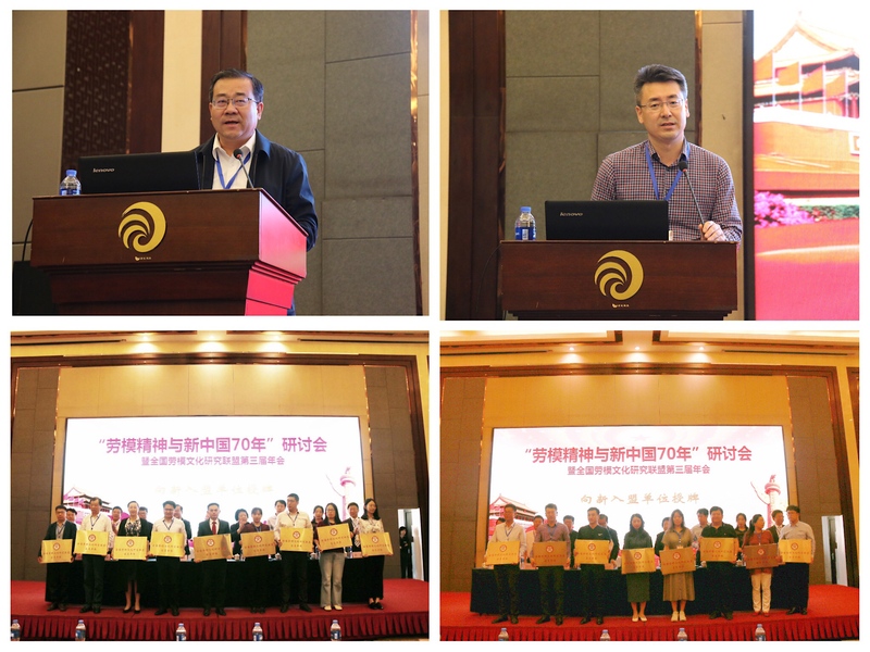 中国劳动关系学院校长刘向兵教授宣读新入盟单位名单。中国人民公安大学、东北林业大学、重庆大学、河南师范大学、上海电力大学、陕西师范大学、湖南农业大学等32所高校加入全国劳模文化研究联盟。联盟向新入盟单位授牌。东北电力大学马克思主义副院长姜威代表新入盟单位发言。