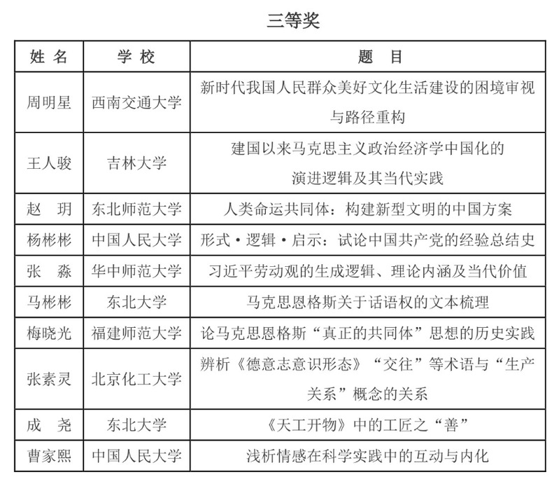 自2019年6月17日发布征文通知以来,论坛得到了全国高校马克思主义理论、哲学及相关学科研究生积极响应。经论文评审委员会对所有论文进行匿名评审,最终确定93名同学入选本次论坛参会研讨,其中获奖论文32篇。名单如下:
