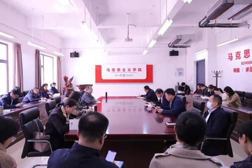 4月14日,马克思主义学院在文管学馆A217室召开2021年全面从严治党工作会议暨党史学习教育动员会。学院领导班子成员、全体教职工、学生党员代表参加会议。会议由学院党委副书记兼副院长吕昫光主持。