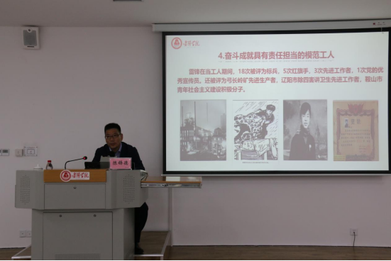 雷锋学院副院长陈锡德教授应邀作了题为《学雷锋精神,做“四有”好老师》的专题报告。他从“奋斗成就雷锋精神”“新时代更需要雷锋精神”“学雷锋精神做‘四有’好老师”三个方面做了深入阐述。他指出,奋斗使雷锋成为具有坚定理想信念的好学生、为人民服务的先进公务员、具有过硬本领的新式农民、具有责任担当的模范工人、具有崇高道德的先锋战士。他强调,新时代更需要雷锋精神,广大教师应在落实立德树人根本任务中积极践行雷锋精神,做新时代“四有” 好老师。