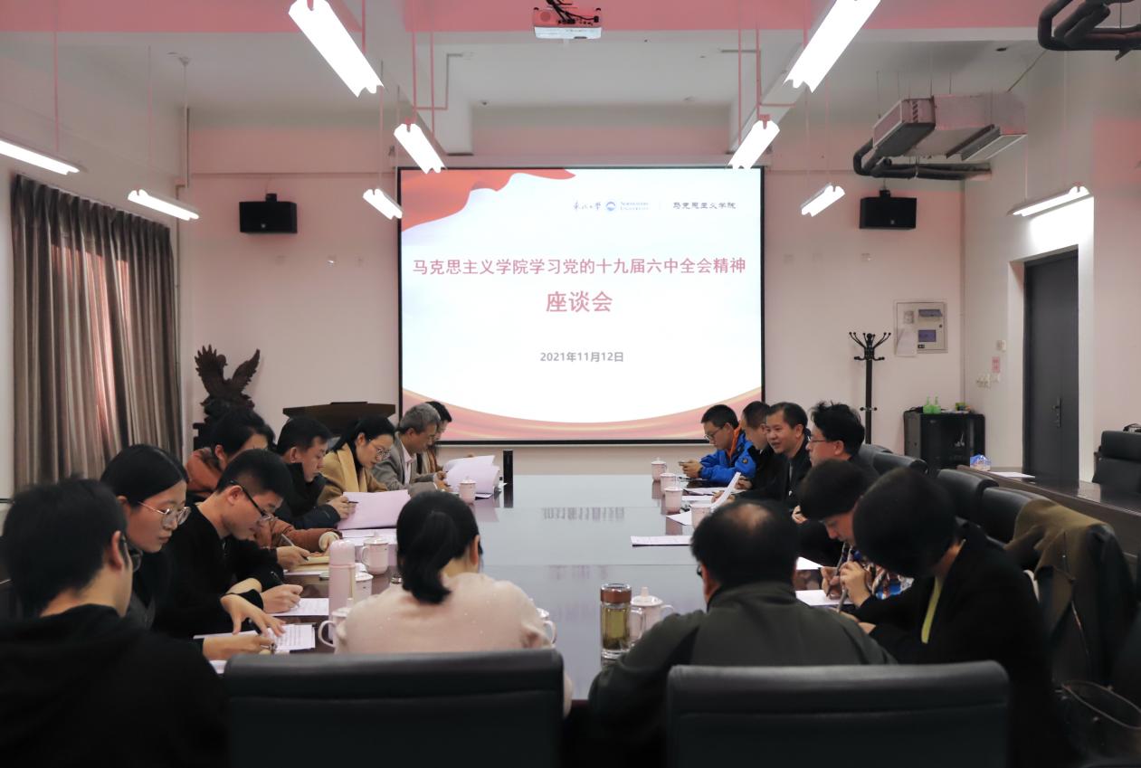 为深入学习领会党的十九届六中全会精神,11月12日,“马克思主义学院学习党的十九届六中全会精神座谈会”在东北大学浑南校区顺利召开。马克思主义学院院长田鹏颖教授、党委书记张满胜及学院教师学生代表参加座谈会。田鹏颖院长主持会议。