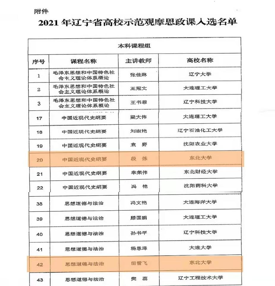 省委教育工委、省教育厅组织开展的高校示范观摩思政课评选活动,为省内广大思政课教师提供课堂教学观摩的机会,充分发挥示范观摩课的示范引领作用,以此引导广大思政课教师认真钻研打磨课程,进而开展教学研究,进一步提升高校思想政治理论课教学质量,推动辽宁省思政课教育教学水平再上新台阶。段炼副教授授课的《中国近代史纲要》与田雪飞副教授授课的《思想道德与法治》分别获批“2021年辽宁省高校示范观摩思政课”。