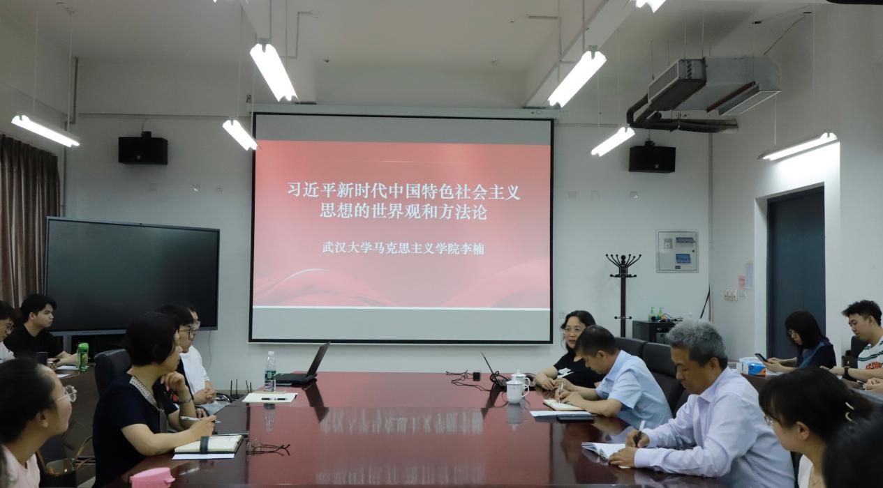 为持续巩固习近平新时代中国特色社会主义思想主题教育读书班教育学习成效,6月13日,学院邀请武汉大学马克思主义学院李楠教授做客“理论中国”大讲堂,为全体师生作了题为《习近平新时代中国特色社会主义思想的世界观和方法论研究》的报告。学院党委书记张满胜及师生代表参加了报告会。张满胜书记主持报告会。