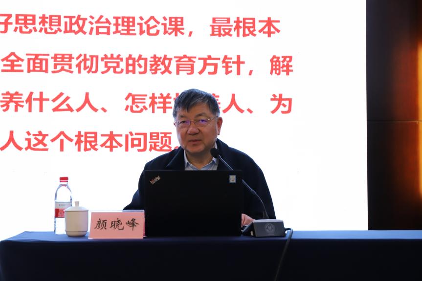 颜晓峰教授作题为《贯彻习近平总书记在学校思想政治理论课教师座谈会上的重要讲话精神 推进天津大学思政课高质量建设的体会》的主旨报告。他从教学机构设置、课程建设成果、教学获奖和教学名师、宣传阐释成果、媒体宣传报道等方面展示了天津大学思政课建设的基本情况。他聚焦加强顶层设计、建立健全管理制度、尊重教育规律、举全校之力开齐开好思政课、着力打造师资队伍、高度重视课程思政、积极推进大中小学思政课一体化建设等方面介绍了天津大学思政课建设的主要做法。他指出,讲好思政课关键在提高教师能力素质,一是坚定政治立场,引导学生深刻领悟“两个确立”的决定性意义;二是领会体系学理,讲清楚教材的理论逻辑、历史逻辑、问题逻辑;三是拓展学科领域,准确阐释教材涉及到的专业知识;四是厚植中华文化,展现习近平新时代中国特色社会主义思想的根脉和底蕴;五是关注社会现实,用新实践解读新思想。