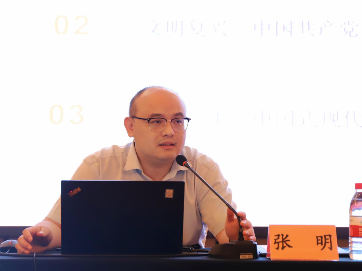 南京大学社科处副处长张明副教授作题为《中国式现代化的文明叙事》的主题发言。他深入阐释了西式现代化结构性矛盾的文化反映、中国共产党现代化实践的文明所指、中国式现代化的文明意蕴等问题。他指出,从文明维度出发可以进一步清晰突显中国式现代化不同于西式现代化的前瞻性与超越性,即面对资本主义文明日渐式微的颓势,中国式现代化具备创造新文明、引领文明走向的理论与现实可能性。