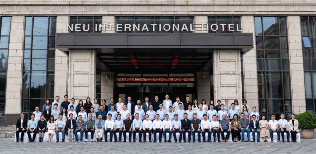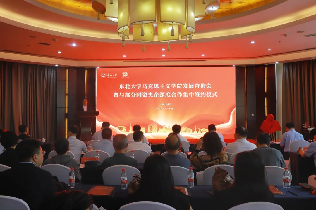 9月19日,马克思主义学院发展咨询会暨与部分国资央企深度合作集中签约仪式在东北大学国际学术交流中心举行,辽宁省教育厅二级巡视员于洪江,沈阳市国有资产监督管理委员会党委委员、副主任冯圣良,东北大学党委书记郭海、党委副书记张皓,大连理工大学马克思主义学院、北京科技大学马克思主义学院、鞍钢集团有限公司、沈阳飞机工业(集团)有限公司、沈阳飞机设计研究所、沈阳鼓风机集团股份有限公司、金圆统一证券有限公司相关负责人,校友代表以及马克思主义学院师生百余人参加签约仪式。