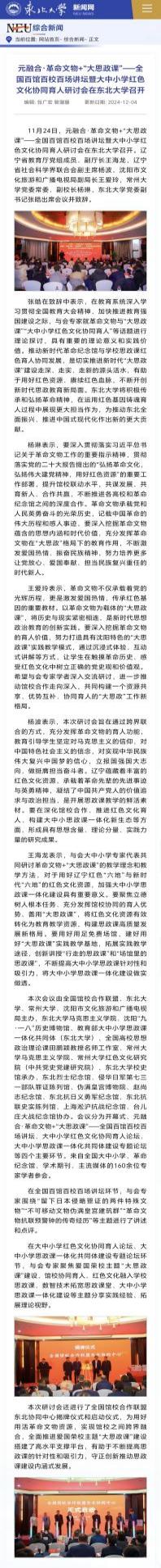 张皓在致辞中表示,在教育系统深入学习贯彻全国教育大会精神、加快推进教育强国建设之际,与会专家就革命文物与“大思政课”“大中小学红色文化协同育人”等话题进行理论探讨,具有重要的理论意义和实践价值。推动新时代革命纪念馆与学校思政课红色育人协同发展,是切实推进新时代“大思政课”建设走深、走实、走新的源头活水,有助于用好红色资源、赓续红色血脉,不断开创新时代思政教育新局面。东北大学将积极传承和弘扬革命精神,在运用红色基因铸魂育人过程中展现更大担当作为,为推动东北全面振兴、推进中国式现代化作出新的更大贡献。