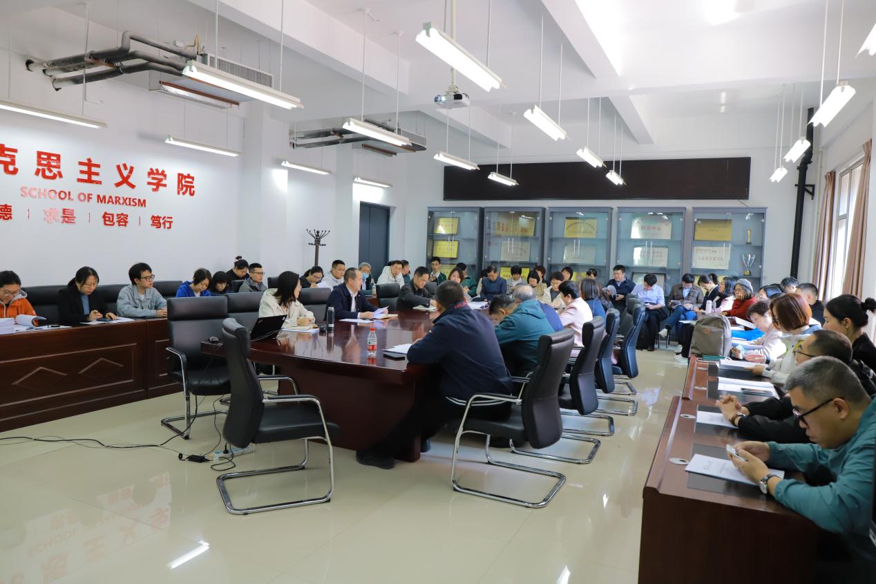 4月28日,马克思主义学院召开本科教育教学质量提升工作会议,马克思主义学院党政领导班子成员以及全体教师参加会议。马克思主义学院院长任鹏主持会议。