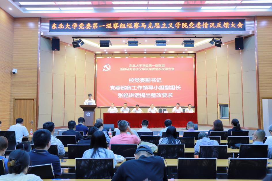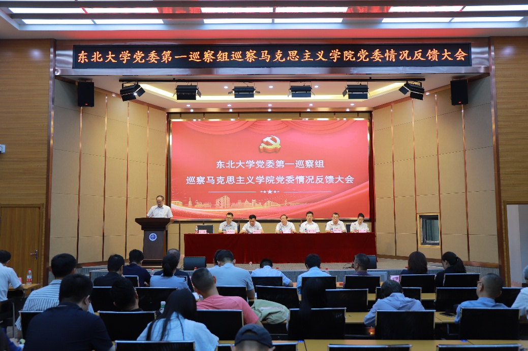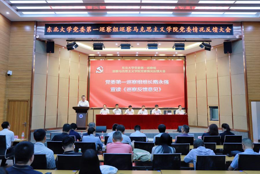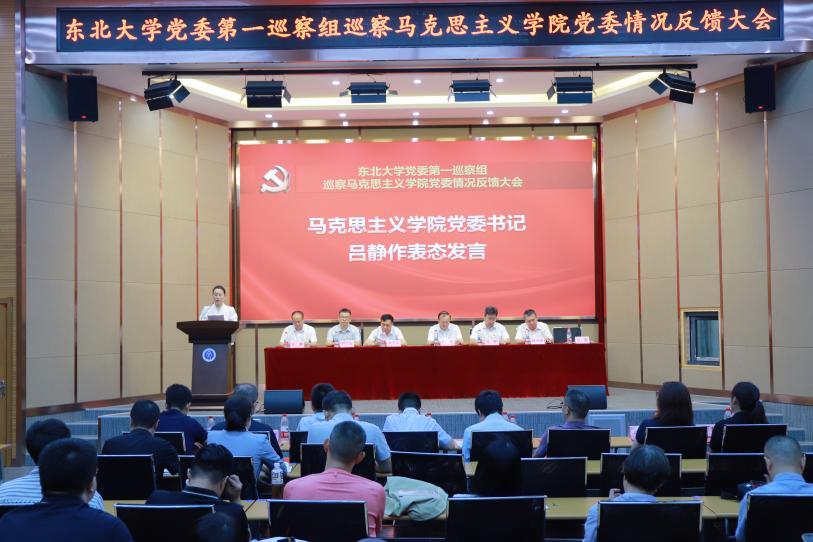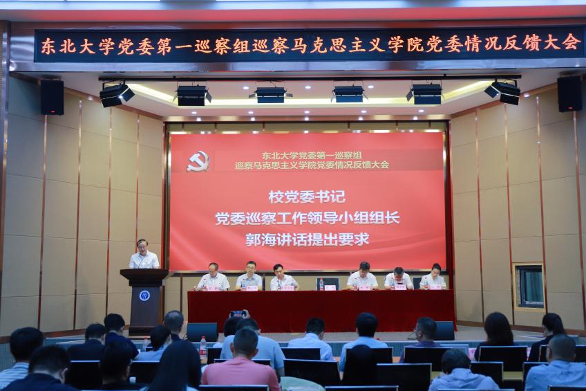 7月11日,东北大学党委第一巡察组巡察马克思主义学院党委情况反馈大会在文管学馆召开。校党委书记、党委巡察工作领导小组组长郭海,校党委副书记、党委巡察工作领导小组副组长张皓,校党委常委、组织部部长、党委巡察工作领导小组成员张玉宝,党委第一巡察组组长、文法学院党委书记隋永强,校纪委副书记、党委巡察办主任、党委巡察工作领导小组成员王剑,校纪委副书记、纪委办主任、党委巡察工作领导小组成员赵志超,巡察组、巡察办、纪委办和组织部相关同志出席会议。马克思主义学院领导班子全体成员、党委委员、教职工代表、学生代表等参加会议。马克思主义学院院长任鹏主持会议。