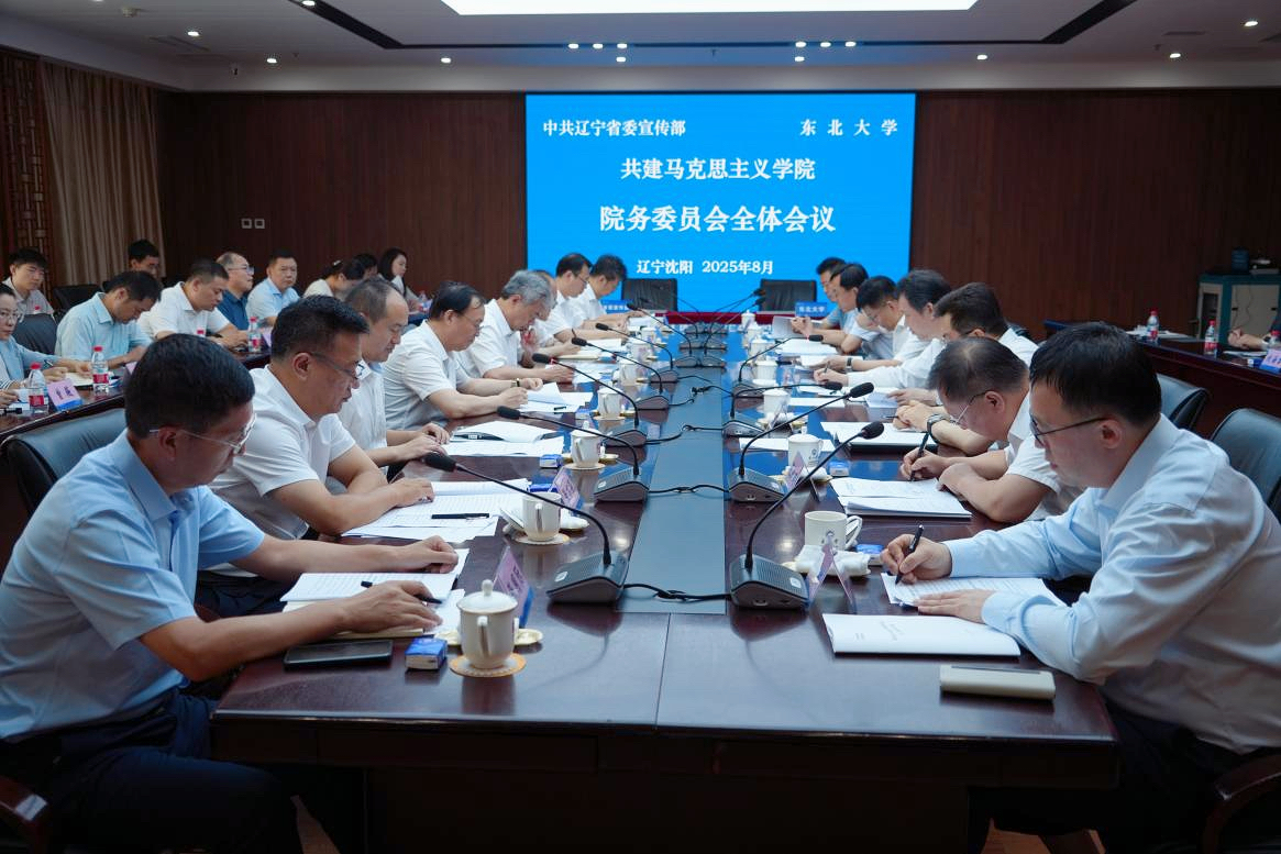 东北大学马克思主义学院院长任鹏汇报近年来马克思主义学院建设情况及下一步工作计划。院务委员会成员单位省委网信办、辽宁报刊传媒集团、辽宁广播电视集团、省文化和旅游厅、省公共文化服务中心、辽宁社会科学院、省社科联、辽宁出版集团相关负责同志交流座谈。