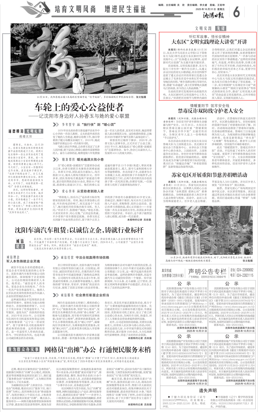 此次宣讲是大东区新时代文明实践中心与东大马院文明共建的实践尝试,也为双方后续合作奠定了坚实基础。下一步,双方将围绕“大东理论学习家”“政策解码小课堂”“理润万家故事会”等形式持续深化合作,推动“文明实践大讲堂”活动走进文明实践所站,让科学理论深入基层、文明新风浸润人心。